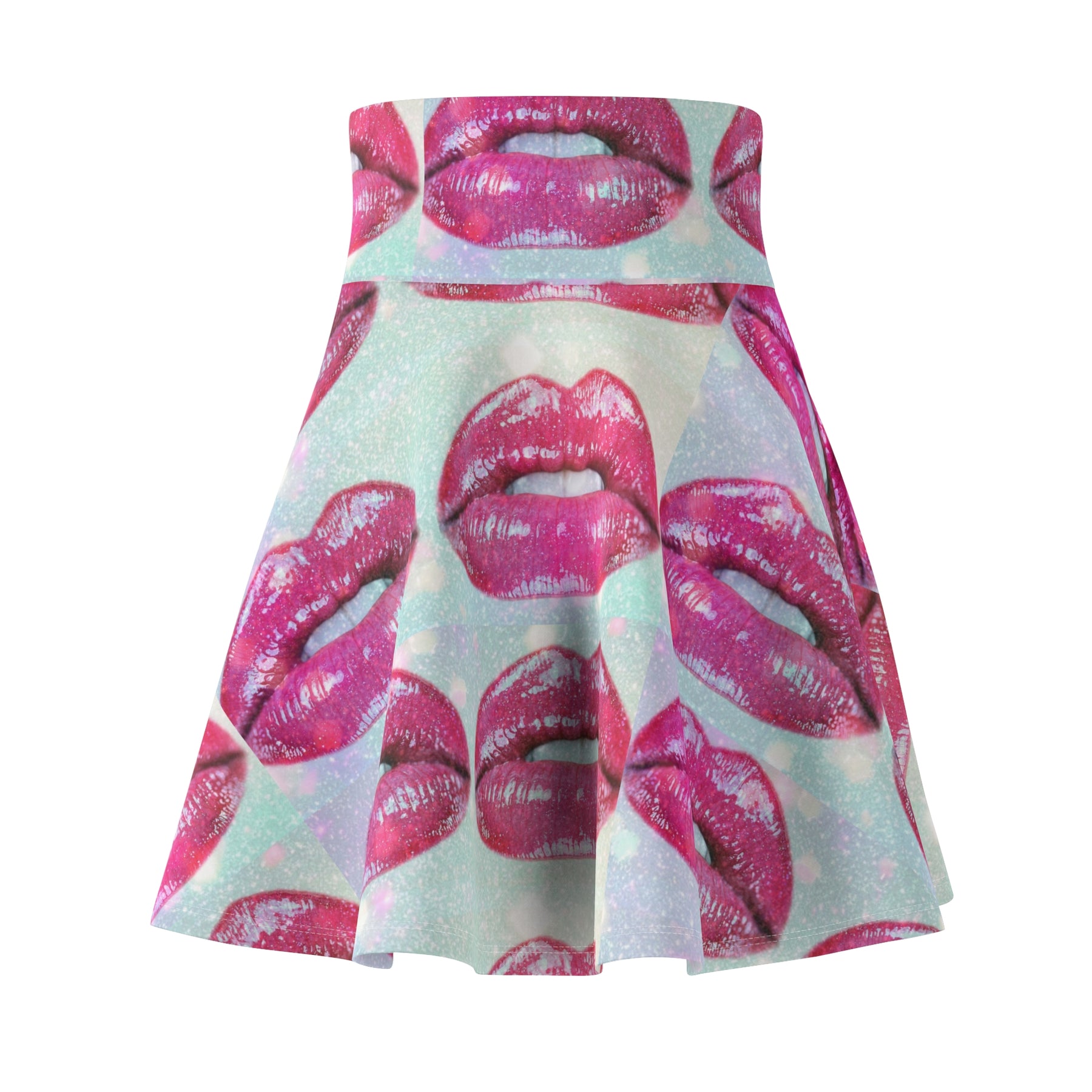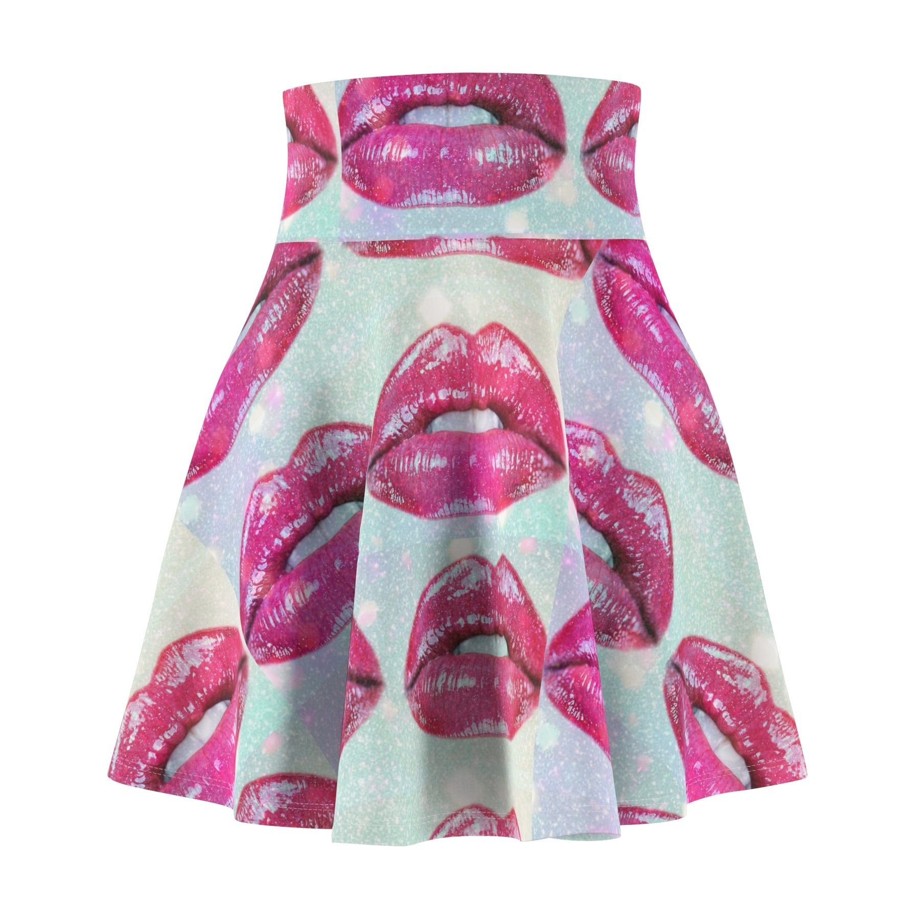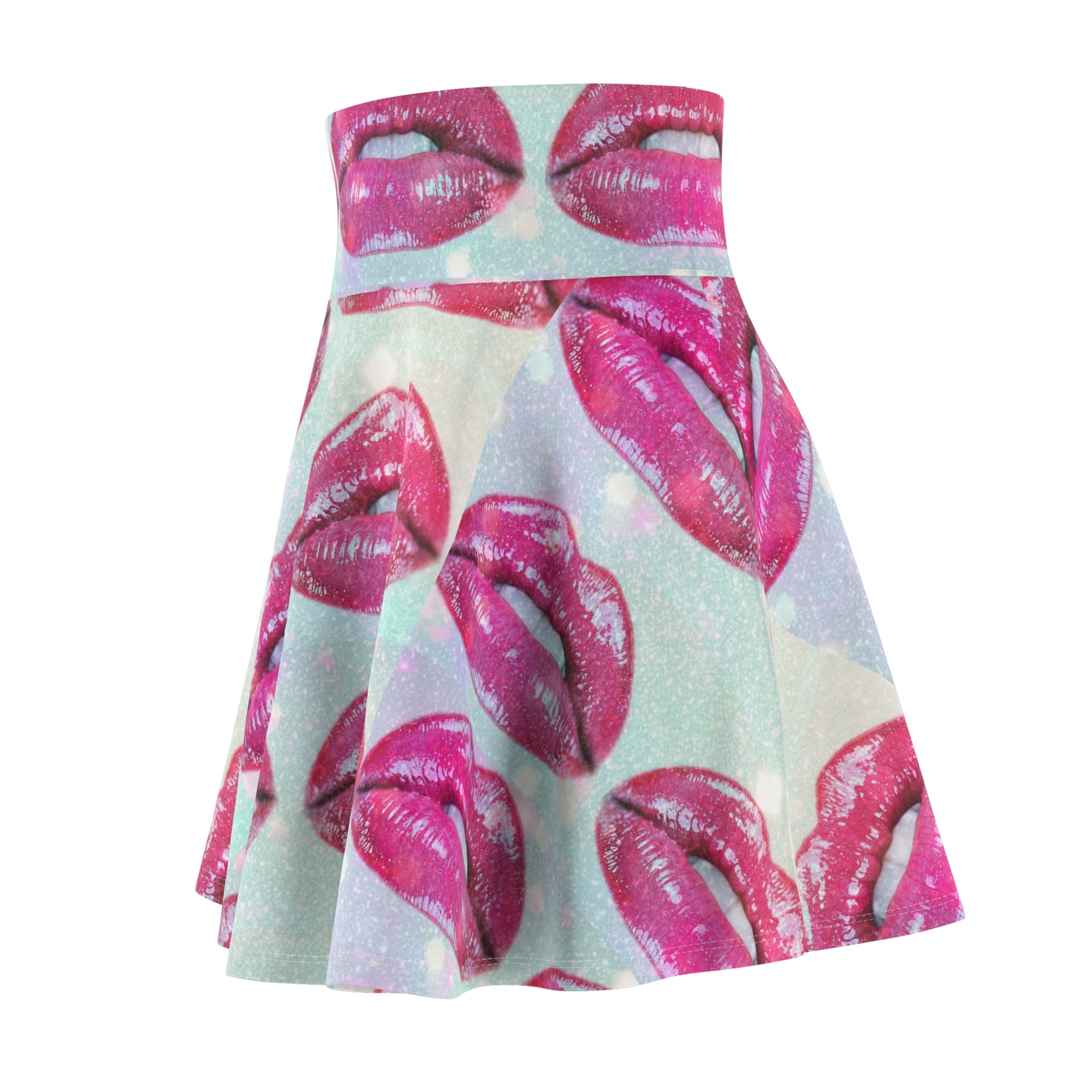 This cute skater skirt is a fun and flirty addition to any wardrobe. Covered in an all-over print of fun kissy lips, it's perfect for date nights or girls' nights out. The skater style flatters every figure with its flared shape. Pair it with a tee and sneakers for a casual weekend look.
