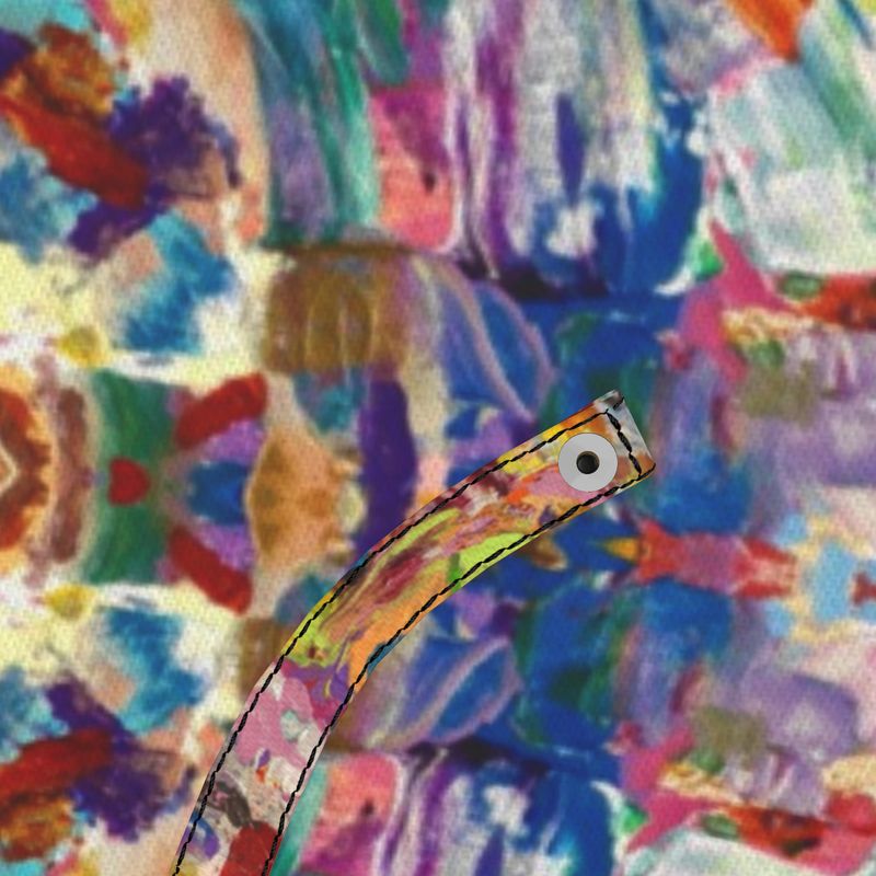 This umbrella is a kaleidoscope of whimsy waiting to brighten up even the dreariest of days. A cheerful abstract reminiscent of rainbows and lollipops dances across the canopy, their swirled stripes and vibrant hues creating an abstract pattern that's quintessentially playful yet undeniably stylish. Whenever the rain clouds roll in, simply pop open this colorful confection and watch as smiles bloom all around you. More than just protection from the elements, it's a portable pick-me-up that lets you flaunt your fun-loving spirit while staying dry. After all, why settle for a drab umbrella when you can twirl a modern-art masterpiece over your head? Whether you're headed to the office or just running weekend errands, this upbeat accessory is sure to enliven any rainy day outfit with its original, eye-catching design. Drab and dreary have met their match—this umbrella is a burst of sunshine, no matter the weather.