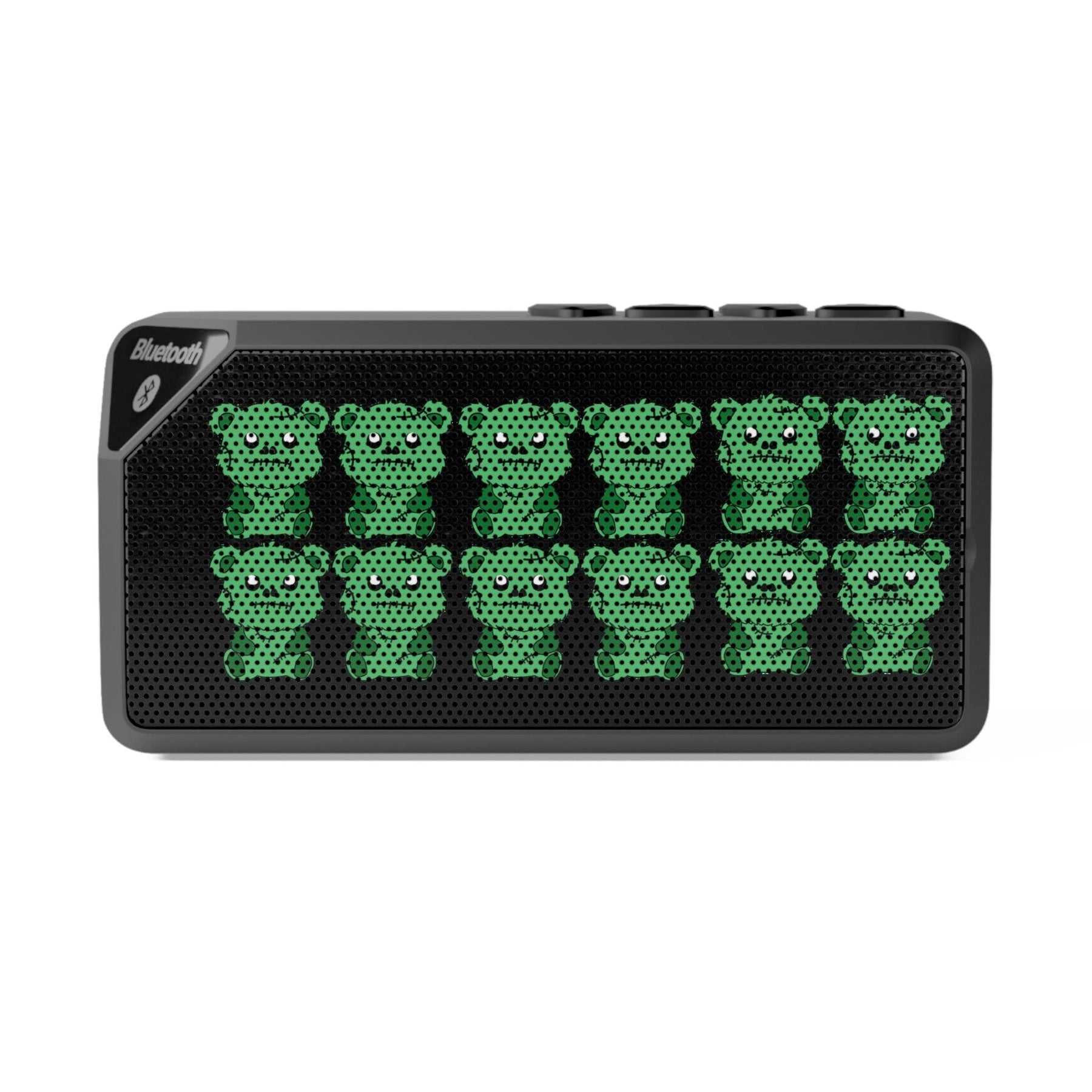 This is no ordinary bear - it's a gnarly green zombie beast that's here to shred some face-melting tunes. Introducing the Not a Carebear Stare Bluetooth speaker, a pop culture phenomenon that fuses the adorable squishiness of everyone's favorite stuffed animals with the gritty, punk rock attitude of the undead. Crank the volume and this little monster will unleash roars of rich, booming sound from its premium speaker blend that puts tinny phone speakers to shame. It's the ultimate nerdy accessory for setting the mood at your next horror movie marathon or adding some apocalyptic ambiance to your crypt. Just don't expect it to cuddle back - these zombie bears only have eyes for eardrum-rattling jams and cute countercultural chaos. Embrace your inner rebel and let this gnarly grizzly be the life of your twisted teddy bear picnic.