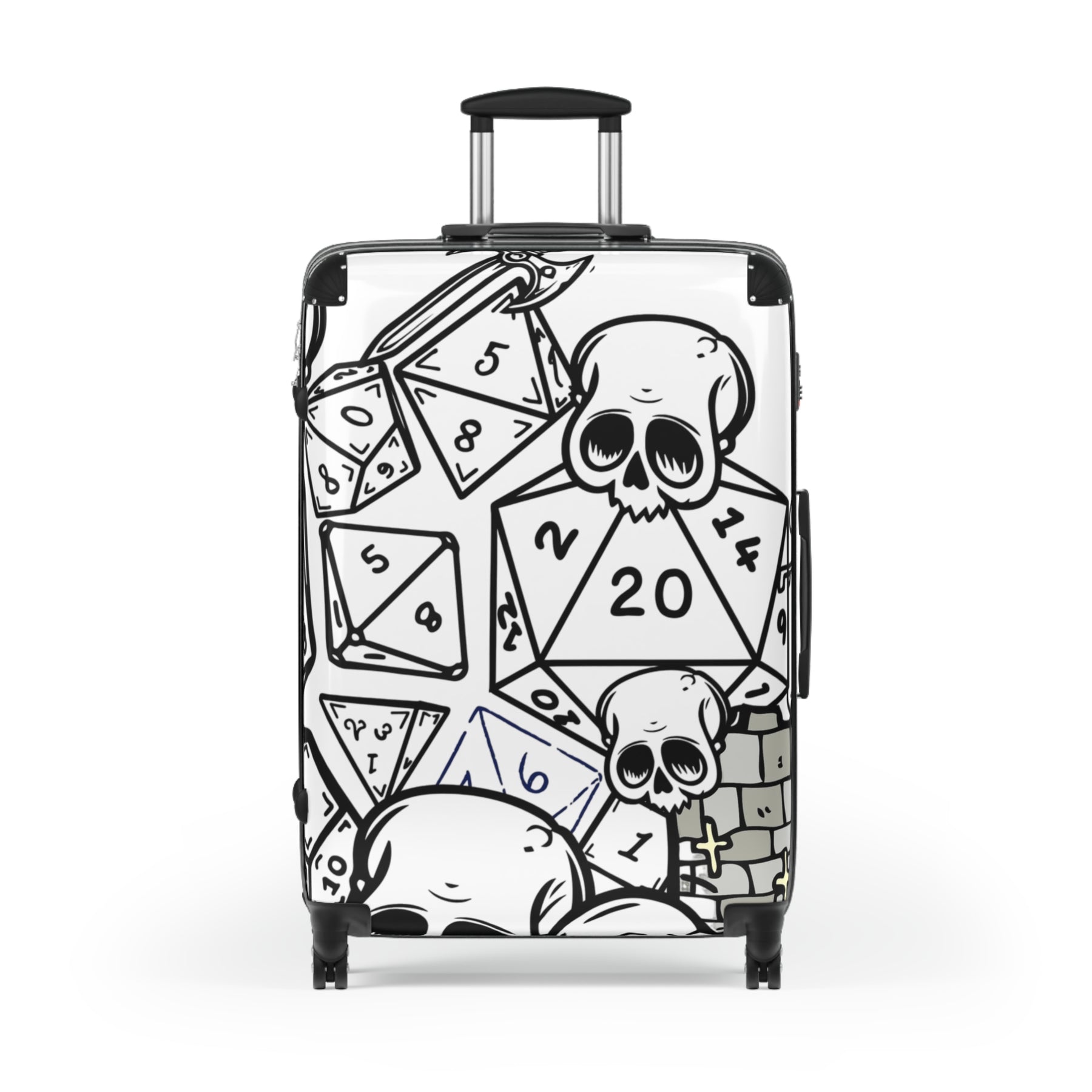 Your quest for the ultimate gaming suitcase ends here. This eye-catching Suitcase, designed for adventurers who love to stand out.  With a roomy main compartment fit for stashing rulebooks, minis and all your D&D essentials, you can ditch that ratty backpack for good. The black-and-white skull design screams "badass gamer," while the durable material blend can withstand even the most intense dice-throwing sessions. Whether you're headed to a weekend convention or just rolling for initiative in your buddy's basement, this suitcase ensures you'll arrive in style, ready to vanquish any foe. Just try not to get too carried away with those boisterous victory cheers—the stares from muggles can be brutal. But hey, with luggage this cool, a little geeky pride is a small price to pay.