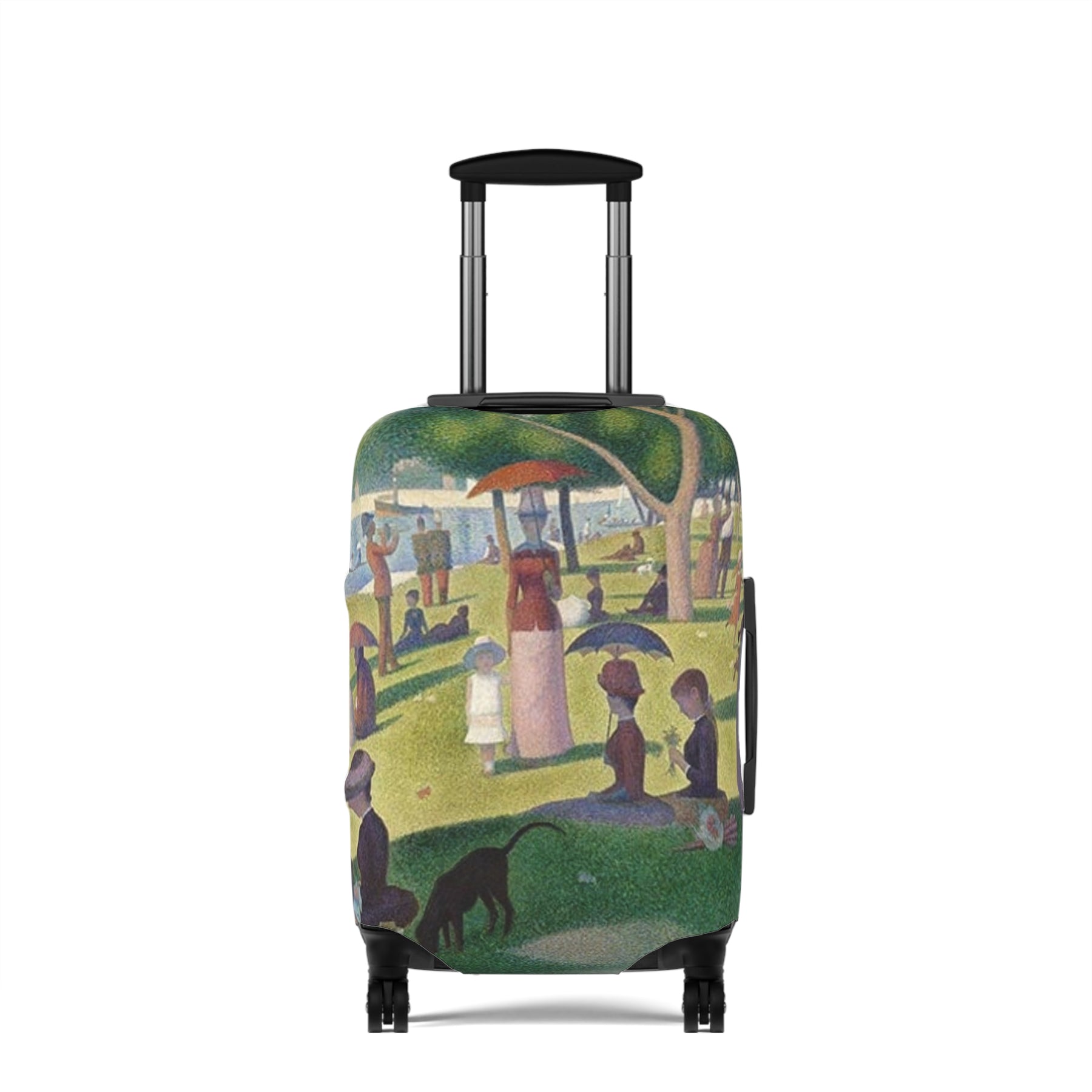 Unleash your inner art critic with this chic luggage cover that transforms your suitcase into a rolling masterpiece. Whether you're a die-hard Warhol fan or prefer the ethereal brushstrokes of Monet, this customizable wrap lets you flaunt your favorite artist while protecting your luggage from travel's rough-and-tumble. Made from a durable yet lightweight blend, it stretches snugly over your carry-on to create a vibrant splash of personality amid the sea of basic black bags. Let your style take center stage as you stroll through the terminal, turning heads with every modern-art-inspired step. After all, when you travel with artistic flair, every destination becomes a gallery for your unique tastes. Forget boring baggage—this cover is a vacation must-have for esthetes who believe life's too short for boring luggage.