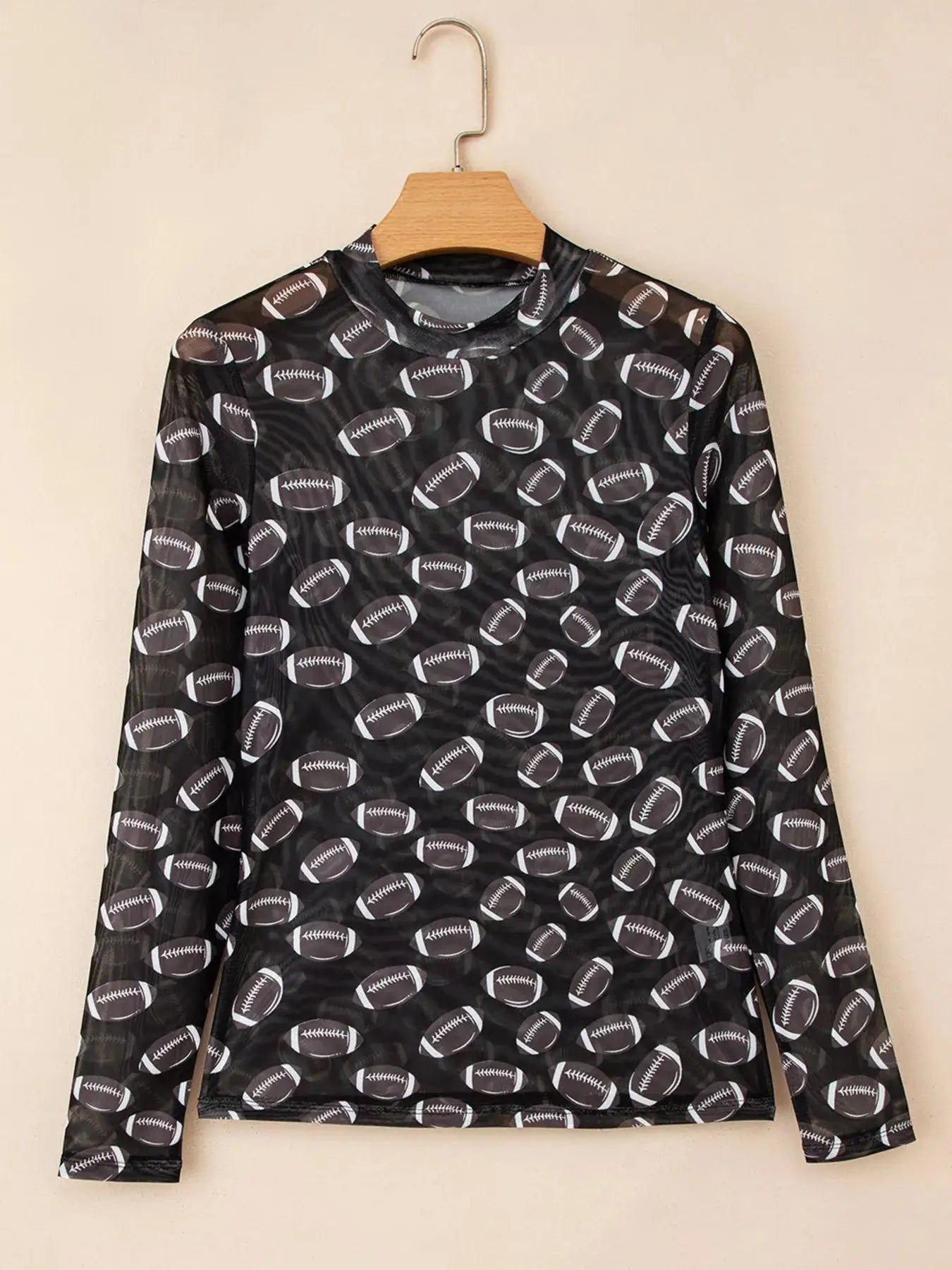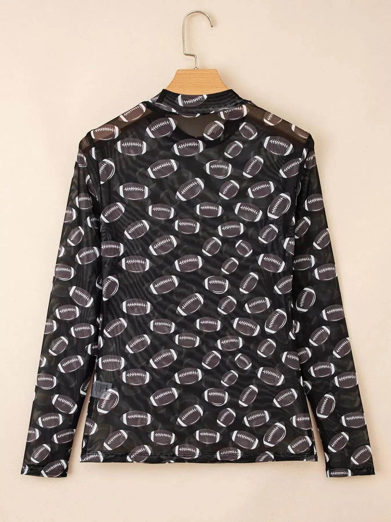 Game Day Sheer Mesh Long Sleeve Top – Stretchy Polyester Blend
